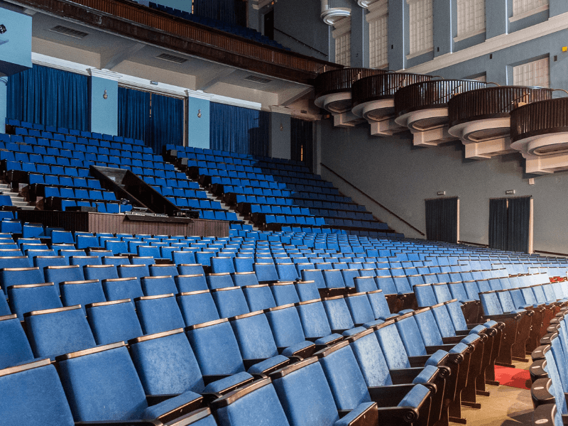 Больше 1800 посадочных мест, современное техническое оснащение сцены, просторная закулисная часть, вежливый персонал, а также кассы, кафе, гардероб – всё, что нужно для комфорта зрителей и успеха вашего спектакля или концерта.